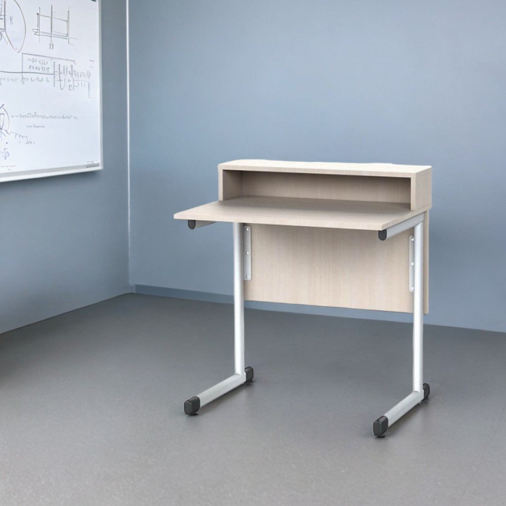 Dimensioni generali: 800x600x900 mm; Peso: 19,00 kg; Il tavolo è realizzato in truciolare melaminico con spessore 18 mm; I telai metallici sono collegati tramite il piano e gli elementi di collegamento metallici; Il piano del tavolo è bordato con ABS da 1,0 mm, gli altri elementi con ABS da 0,5 mm; La struttura metallica è realizzata con tubi profilati da 50x30x1,2 mm, 30x15x1,2 mm e 38x20x1,2 mm, ricoperti da uno strato protettivo decorativo - verniciato in campo elettrostatico; Le estremità del telaio sono protette con tappi in plastica per evitare lesioni; Colori del truciolare: faggio, rovere chiaro, grigio; Colore del telaio: verde chiaro (RAL 6018), grigio (RAL 7035).