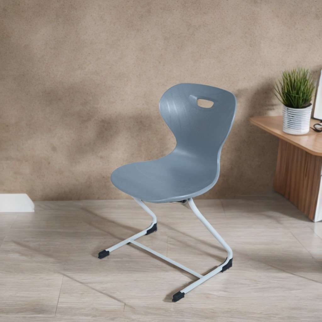 Dimensioni complessive (L×A×A): 440×450×460 mm. Il telaio è realizzato in tubo metallico tondo con diametro di 22 mm, rivestito con vernice a polvere polimerica, resistente all'usura meccanica e alla corrosione. La seduta e lo schienale sono realizzati in plastica durevole e resistente all'umidità. La forma a "Z" delle gambe conferisce stabilità e un design moderno. Tutti i bordi sono arrotondati per maggiore sicurezza e comfort. Colori disponibili per la plastica: viola, giallo, turchese, verde scuro, blu scuro, giallo limone, crema, bordeaux, antracite, grigio chiaro, grigio, rosso, verde. Colore del telaio: grigio (RAL 703)