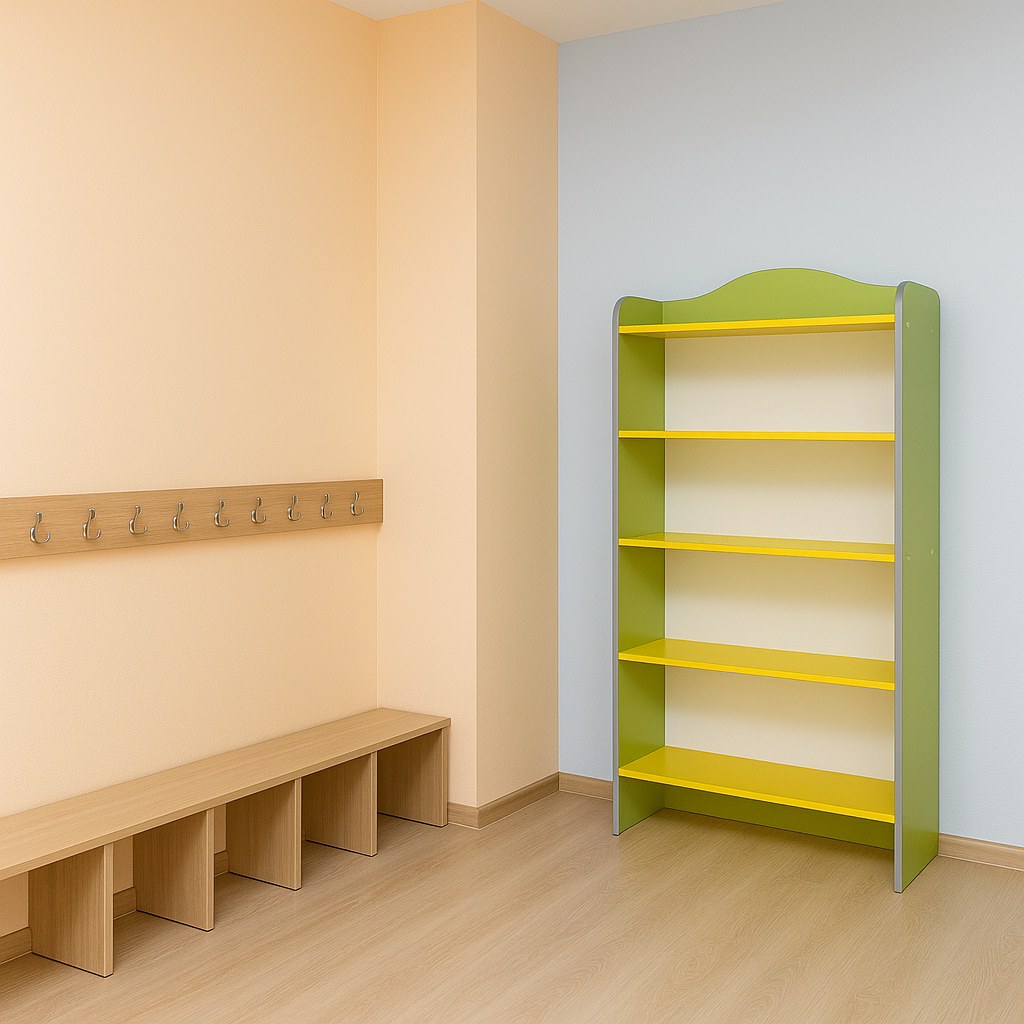 Lo scaffale è realizzato in truciolare melaminico da 16 mm, con retro in PFL bianco da 3 mm e frontale rifinito con bordo in ABS argento da 1 mm. Include 4 ripiani aperti in MDF giallo, ideali per organizzare le scarpe negli spazi scolastici. Il design con angoli arrotondati ed elementi decorativi garantisce sicurezza e un aspetto accattivante. La struttura è assemblata con sistemi di fissaggio sicuri e morsetti a parete per una maggiore stabilità. È dotata di guarnizioni in plastica resistente. Dimensioni: 900 x 250 x 1000 mm Peso: 20,25 kg Colore: verde lime / giallo Garanzia: 24 mesi