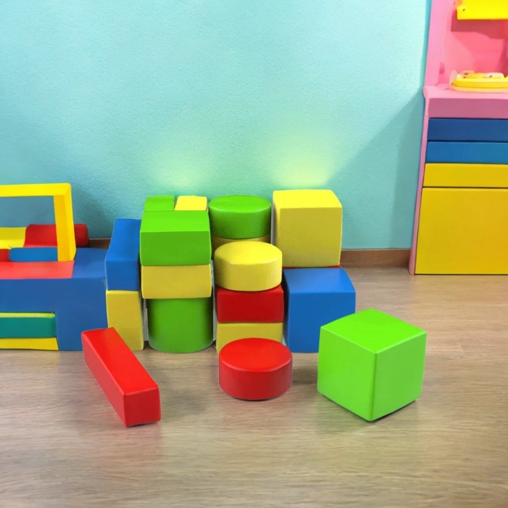 Il set "Gioco n. 10" è composto da 100 moduli geometrici softplay: