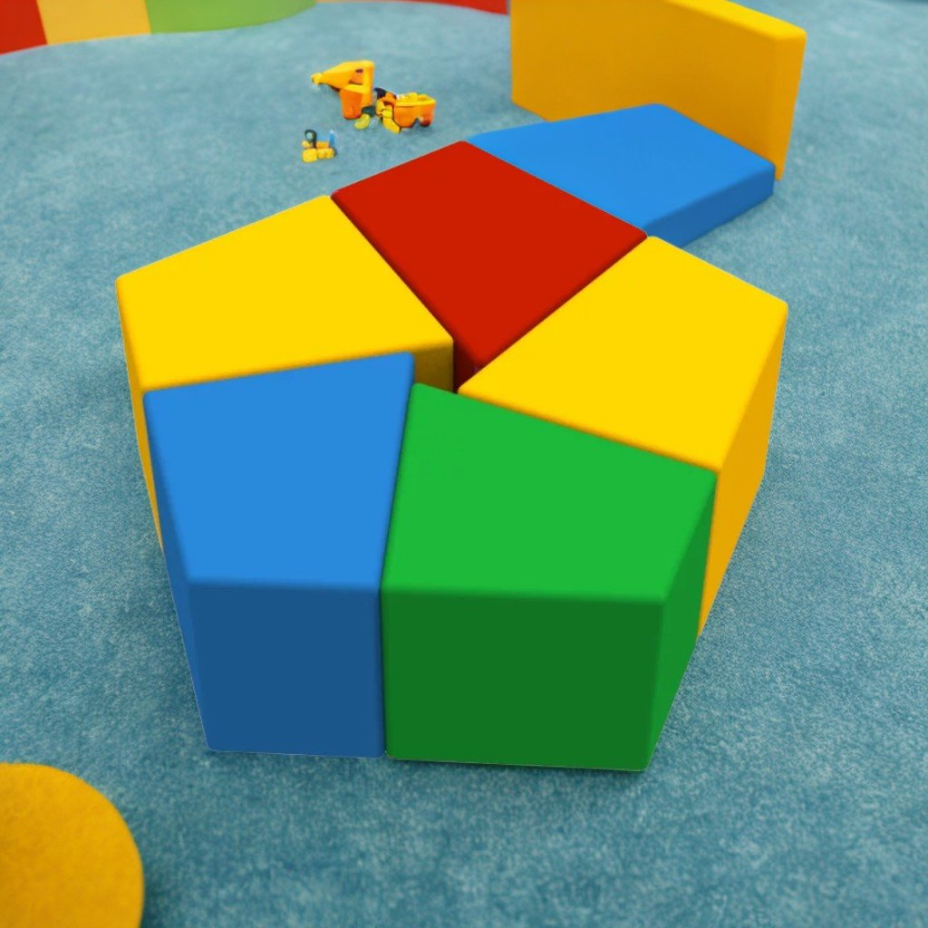 Set di soffi "Topaz" composto da 5 elementi multicolori dalle forme irregolari. I bambini possono saltarci sopra e giocarci. Sviluppa la destrezza e l'ingegno. Leggero, facile da spostare per i bambini. Senza angoli acuti, sicuro per giocare. La forma interessante attrae i bambini. Resistente, ipoallergenico, non assorbe odori o umidità, resistente al sole e all'inquinamento. Densità della gommapiuma 22 kg/m³. Materiale: tessuto PVC/pelle ecologica. Quantità: 5 pezzi. Dimensioni: 76x79x40 cm. Peso totale 2,7 kg. Volume 0,24 m³. Colori: bianco-giallo-verde-viola, giallo-rosso-blu-verde, rosa-giallo, verde-giallo. Consigliato per ambienti asciutti e ventilati. Uso esterno solo con tempo asciutto. Non si bagna e non rimane bagnato dopo la pulizia. Pulire con comuni detergenti domestici, senza cloro o prodotti chimici aggressivi.
