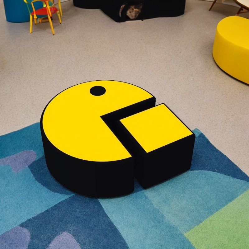 Il set "Pac-Man" comprende un pouf e un divano, progettati per stimolare la logica e l'ingegno dei bambini.