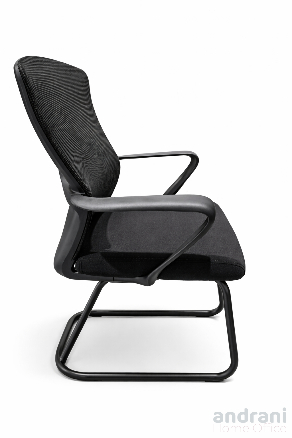 La base a slitta in metallo conferisce stabilità e un carattere distintivo, rendendo la sedia perfetta per sale riunioni, uffici direzionali o spazi operativi moderni.