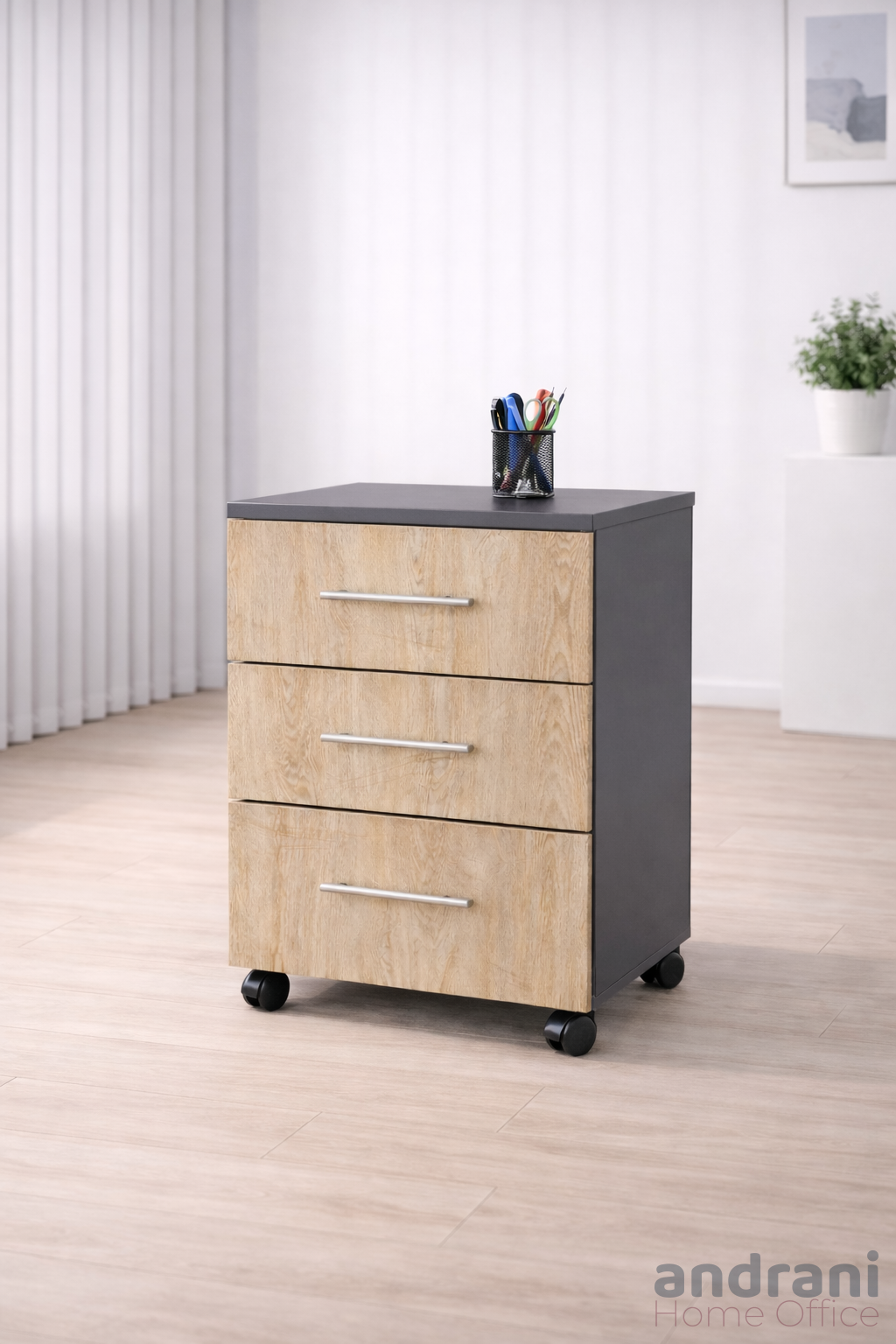 Questo cassettiera da ufficio con 3 cassetti è una soluzione compatta e pratica per organizzare lo spazio di lavoro. Aiuta a liberare spazio sulla scrivania, offrendo allo stesso tempo un comodo contenitore per tutti gli accessori necessari.