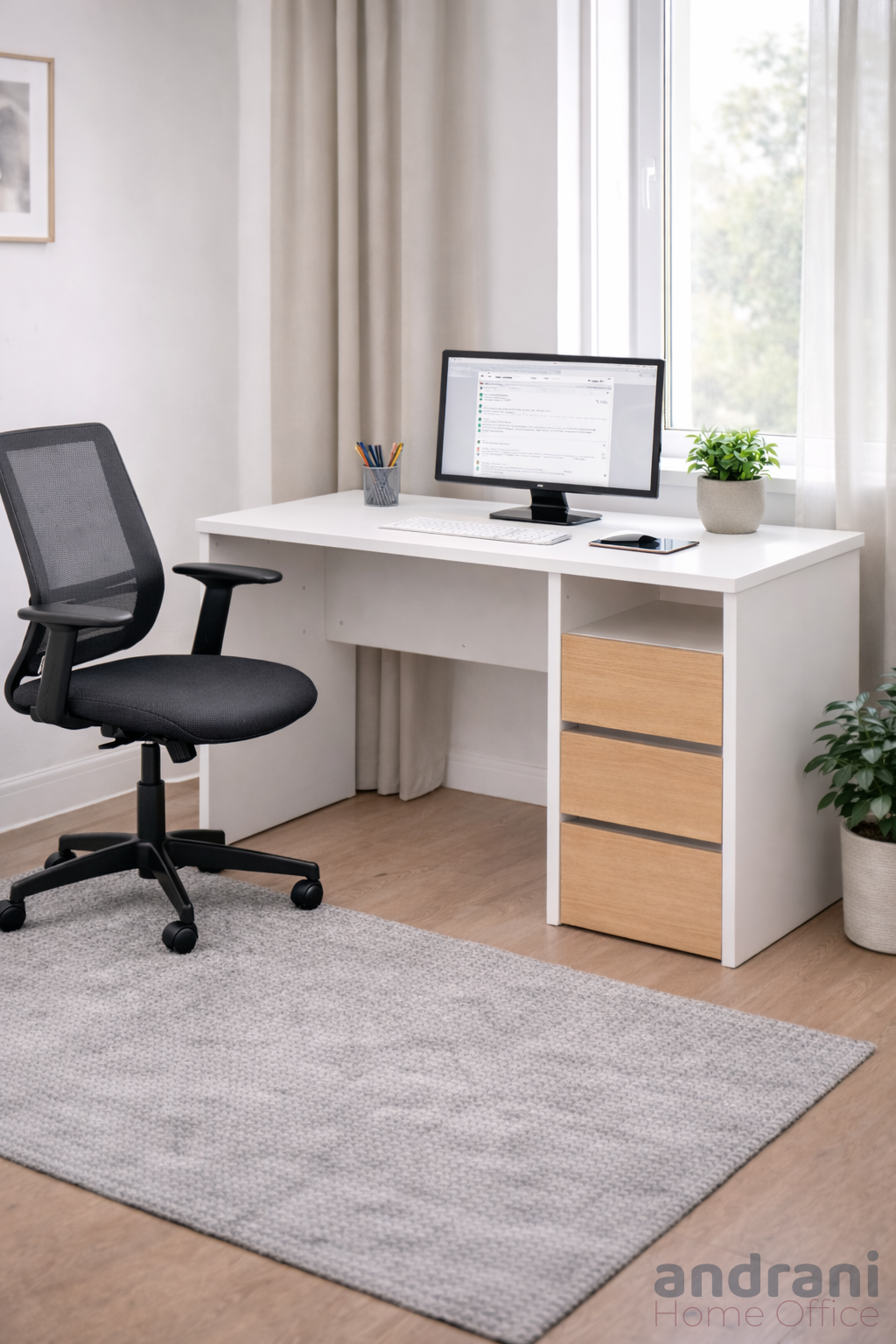 Questa scrivania da ufficio con 3 cassetti è un mobile универсale e pratico, progettato per un’organizzazione efficiente dello spazio di lavoro. I cassetti integrati offrono ampio spazio per documenti, cancelleria e accessori da ufficio, mantenendo il piano di lavoro pulito e ordinato.